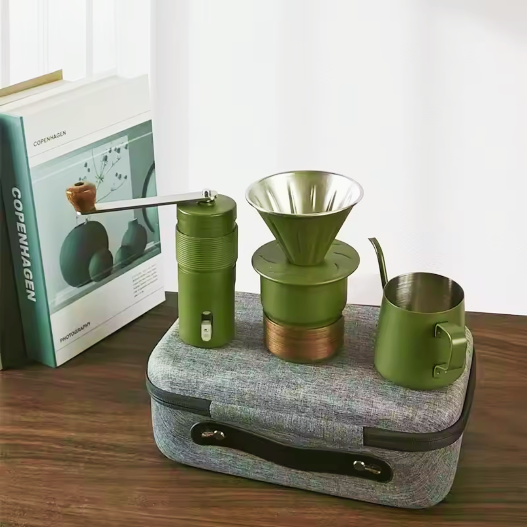 Fuel your adventures with the rich aroma of freshly brewed coffee—no matter where the journey takes you. The Portable Travel Camping Metal Coffee Pot Dripper Grinder is your all-in-one coffee solution designed for travelers, campers, and outdoor enthusiasts who refuse to compromise on taste.